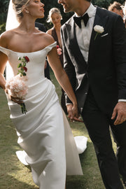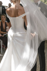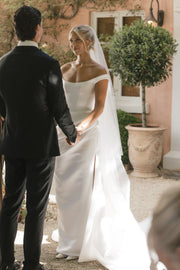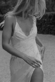 The moment I walked into KYHAs Melbourne showroom, a sense of calm washed over me, and I just knew I had found the place where I'd discover my dream gown. I had created a mood board based on my previous fittings, reflecting the vision I hoped to bring to life with Kyha. We discussed every detail meticulously, and with ease, Kyha hand drew my perfect gown- Winton. Winton was crafted with so much love, and I truly believe it is the perfect blend of timeless elegance and edgy sophistication for the modern bride. For my second look, I wanted something that felt sexy, comfortable, and subtly romantic and this gown delivered on all fronts. With its low plunge back, draped lace details, deep neckline, and striking slit, it was everything I had envisioned.